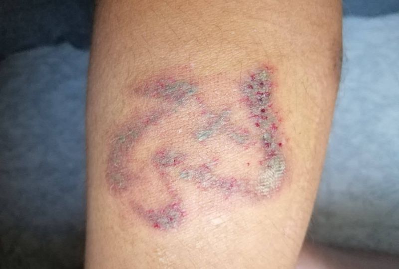 • T包小腿吹火男+阿多福纹身图片_腿部老传统新传统吹火男阿