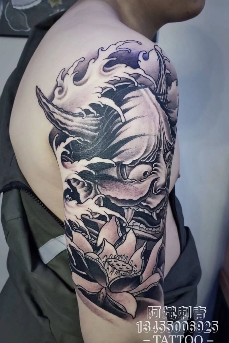 当前位置: 首页 >山东省日照市纹身店-阿斌刺青纹身工作室纹身图案>般若纹身图片_手臂肩部新传统纹身图案