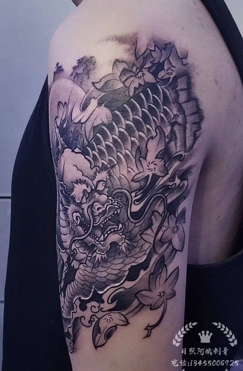 当前位置: 首页 >山东省日照市纹身店-阿斌刺青纹身工作室纹身图案>麒麟纹身图片_肩部手臂新传统纹身图案
