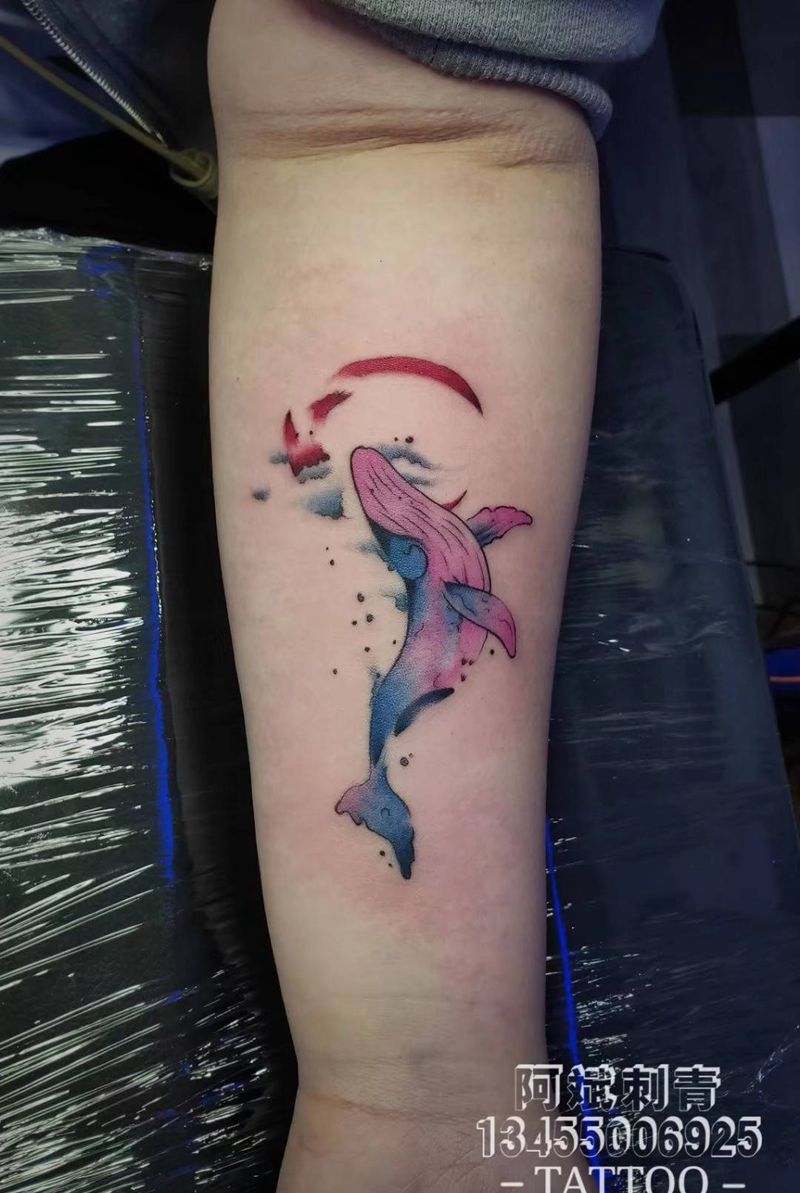当前位置: 首页 >山东省日照市纹身店-阿斌刺青纹身工作室纹身图案>鲸鱼纹身图片_手臂新传统纹身图案