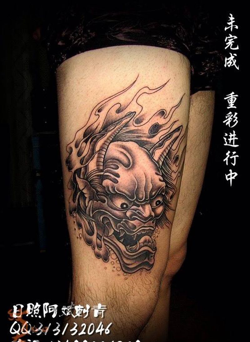 黑灰满背纹身图案