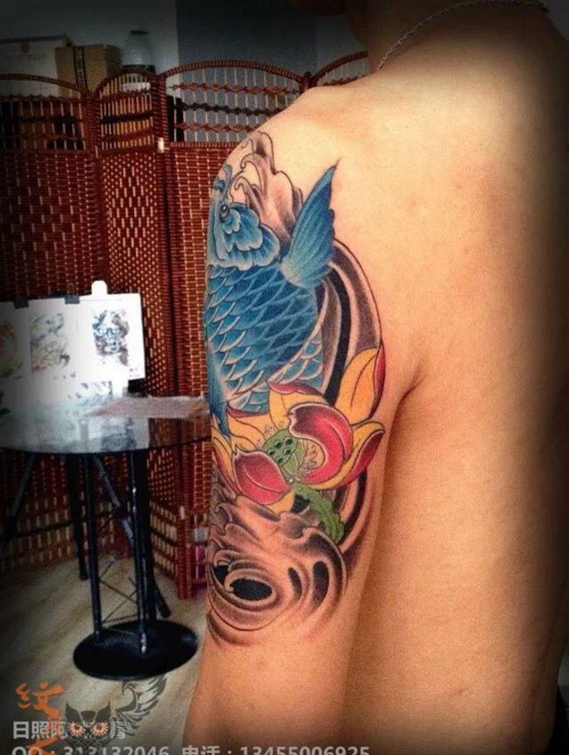 当前位置: 首页 >山东省日照市纹身店-阿斌刺青纹身工作室纹身图案>鲤鱼纹身图片_成品肩部传统动物纹身图案