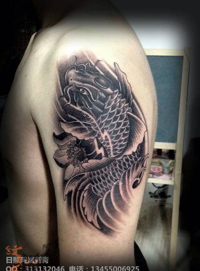 鲤鱼纹身图片_成品肩部传统动物纹身图案
