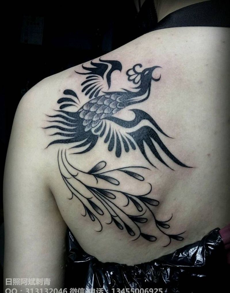 黑灰满背纹身图案
