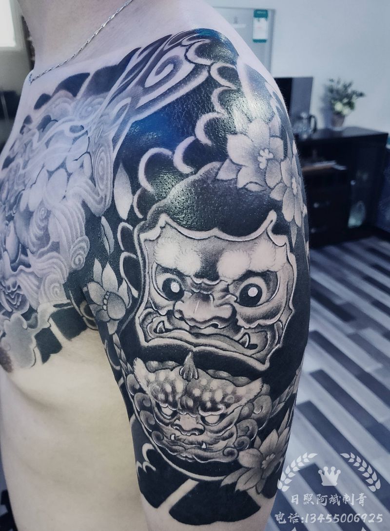 黑灰满背纹身图案