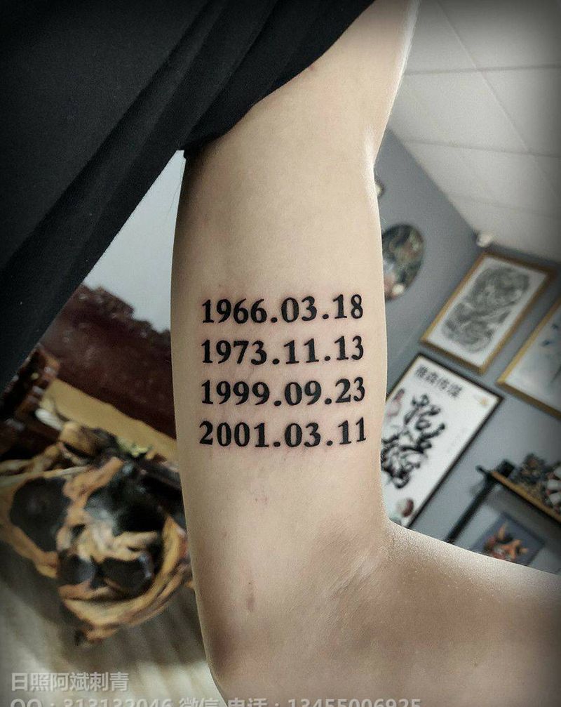 日期纹身图片_胸部手臂花体字纹身图案