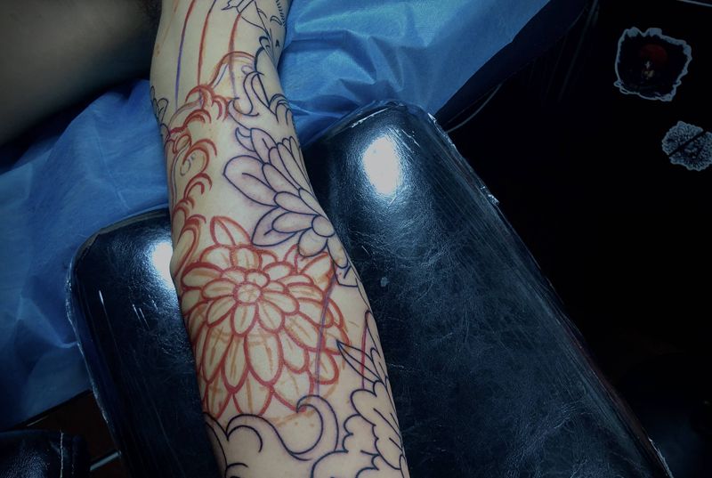 一组15张莲花纹身手