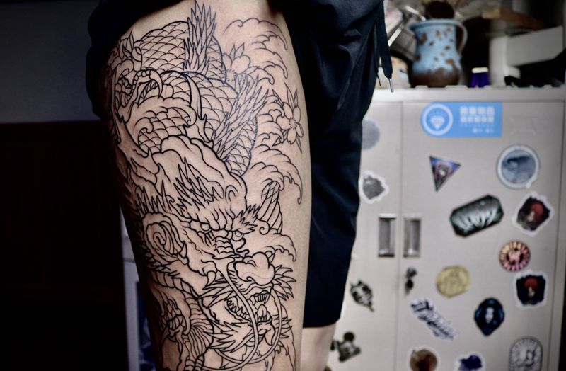 黑灰满背纹身图案