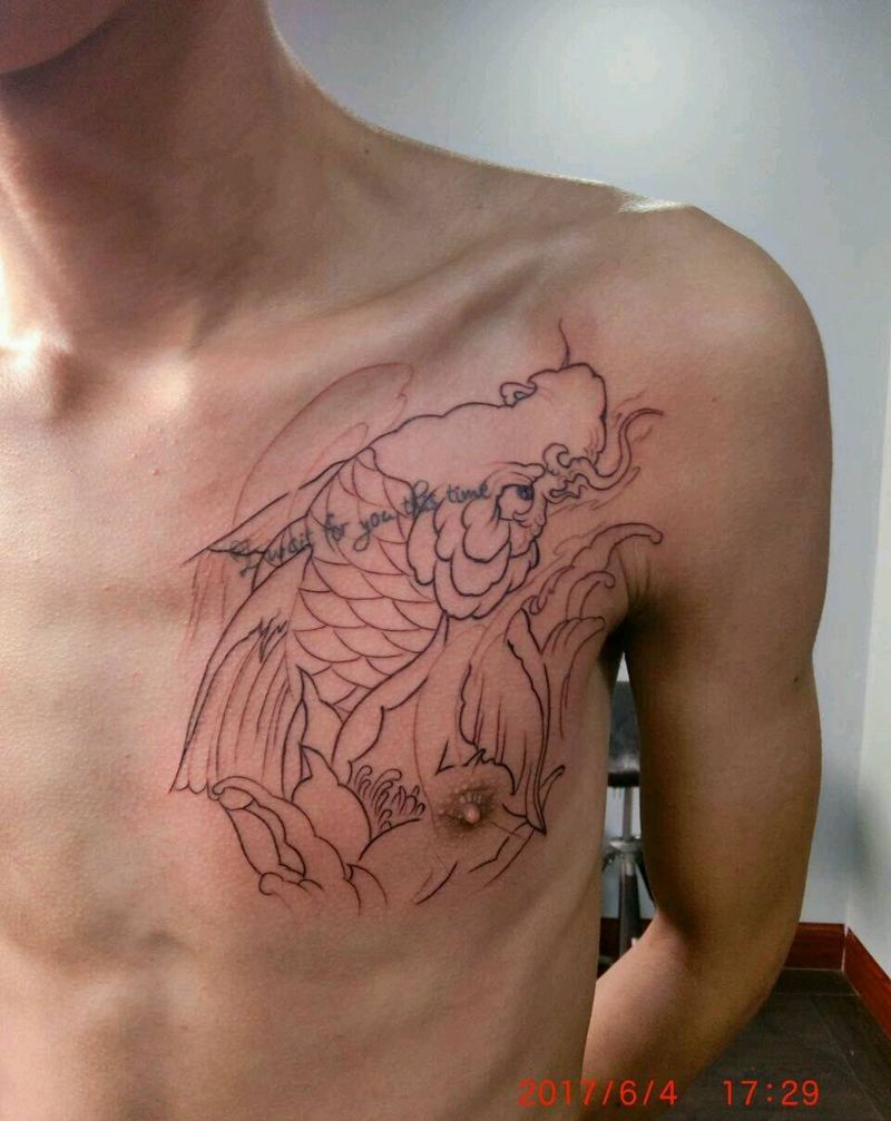当前位置: 首页 >山东省日照市纹身店-赤焰阁纹身工作室纹身图案>鲤鱼遮盖线条纹身图片