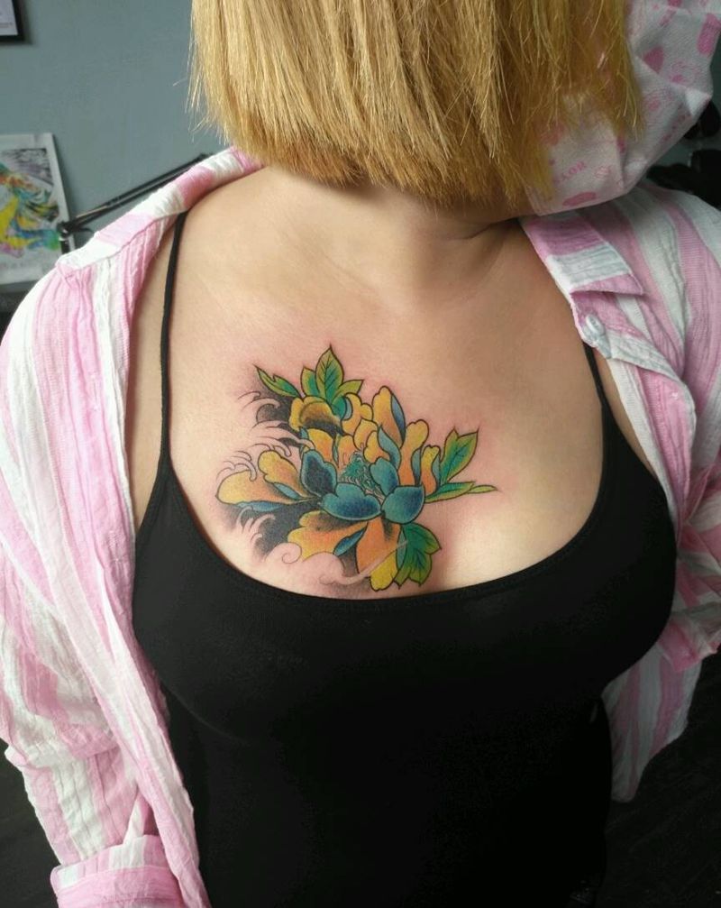 • 女性大花胸纹身_43张霸气漂亮的女性大花胸纹身图案作品