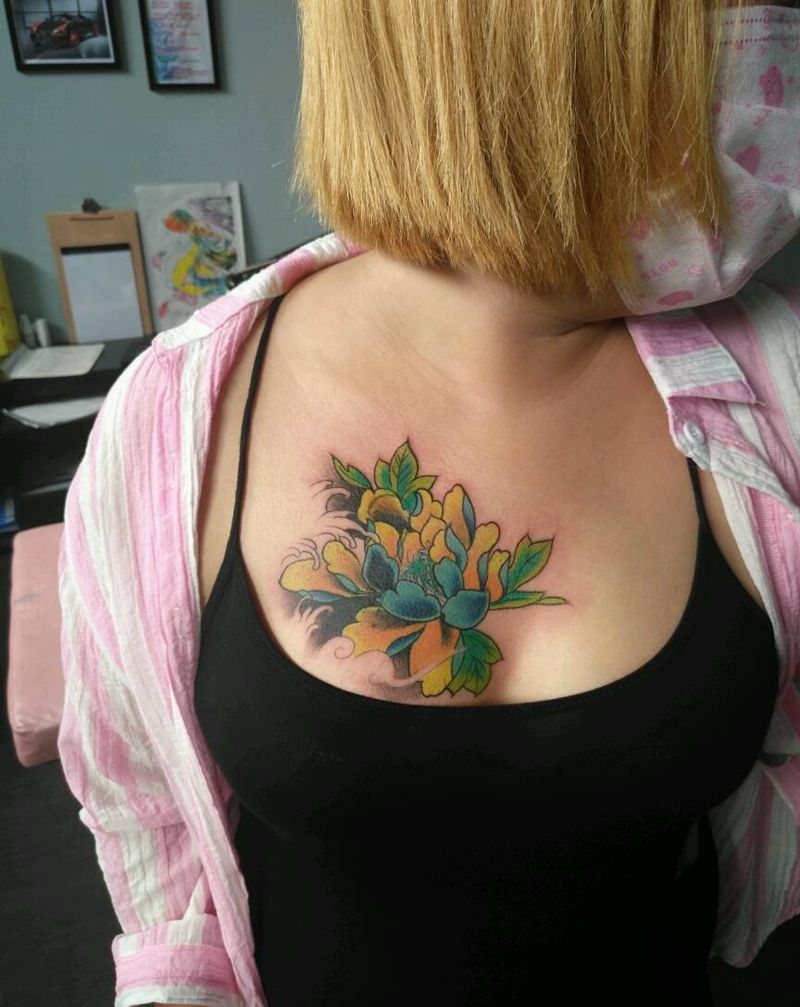 • 女性大花胸纹身_43张霸气漂亮的女性大花胸纹身图案作品