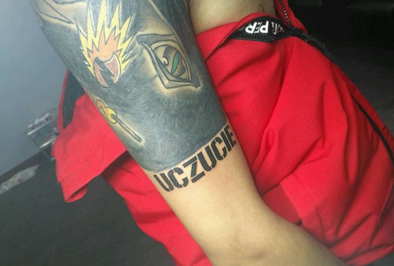 当前位置: 首页 >山东省日照市纹身店-赤焰阁纹身工作室纹身图案>黑臂遮盖恢复后添加字母纹身图片