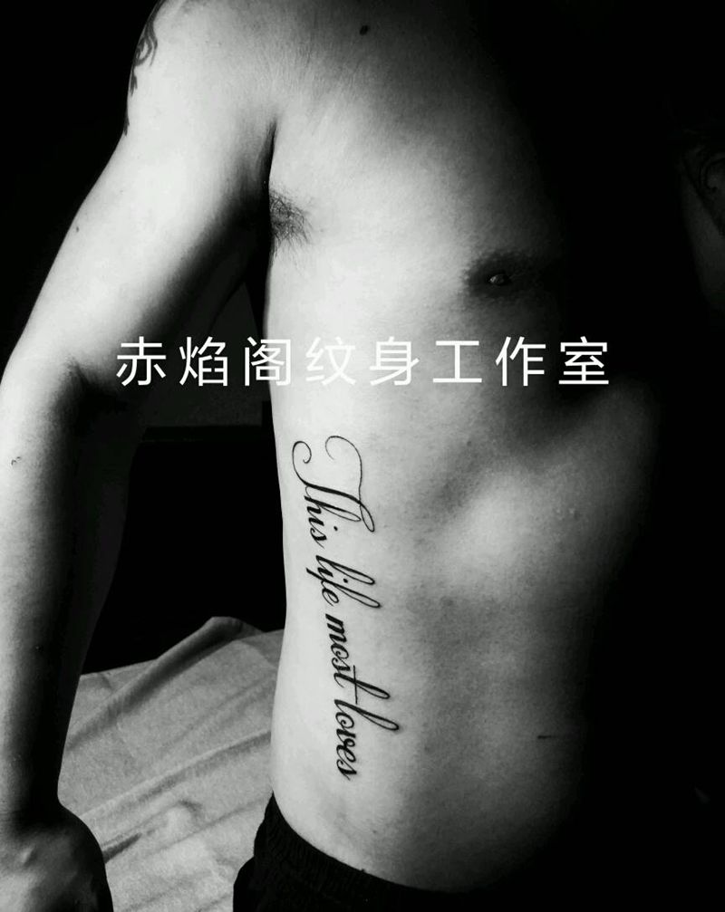 当前位置: 首页 >山东省日照市纹身店-赤焰阁纹身工作室纹身图案>侧腰英文纹身图片