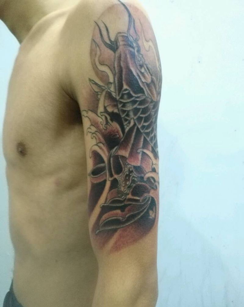 • T网红王老大花腿龙纹身图片_腿部新传统纹身图案