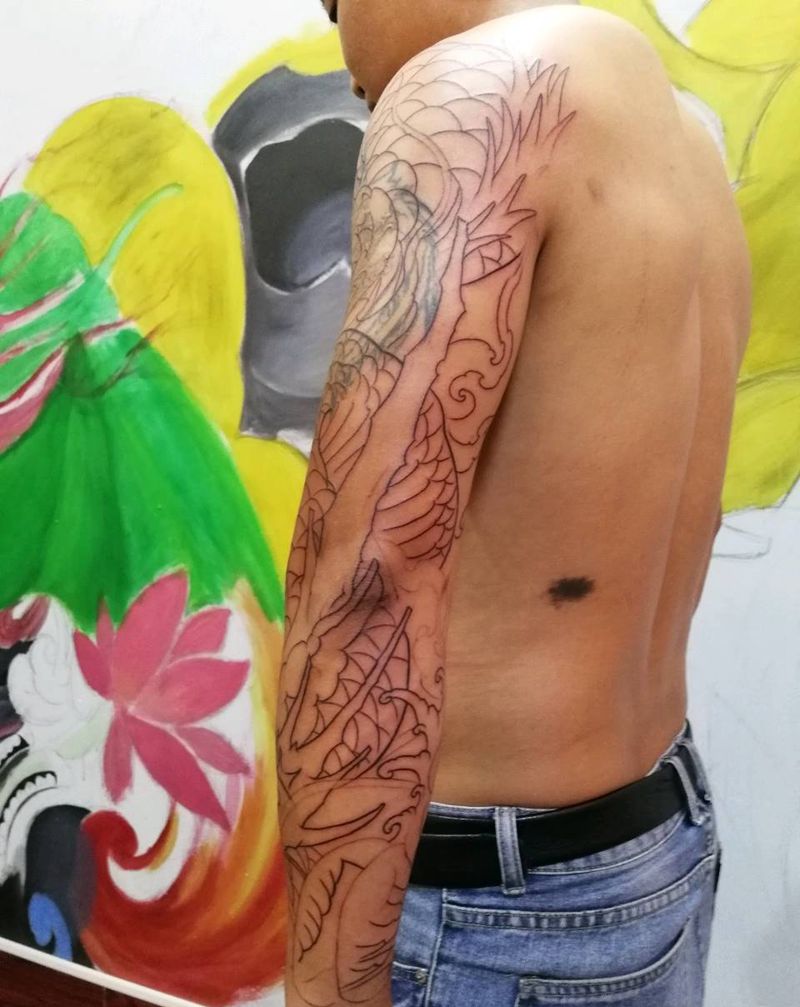 当前位置: 首页 >山东省日照市纹身店-赤焰阁纹身工作室纹身图案>花臂龙遮盖纹身图片