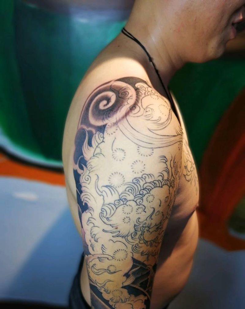 • 纹身吧推荐的披肩图腾半胛纹身图案作品展示
