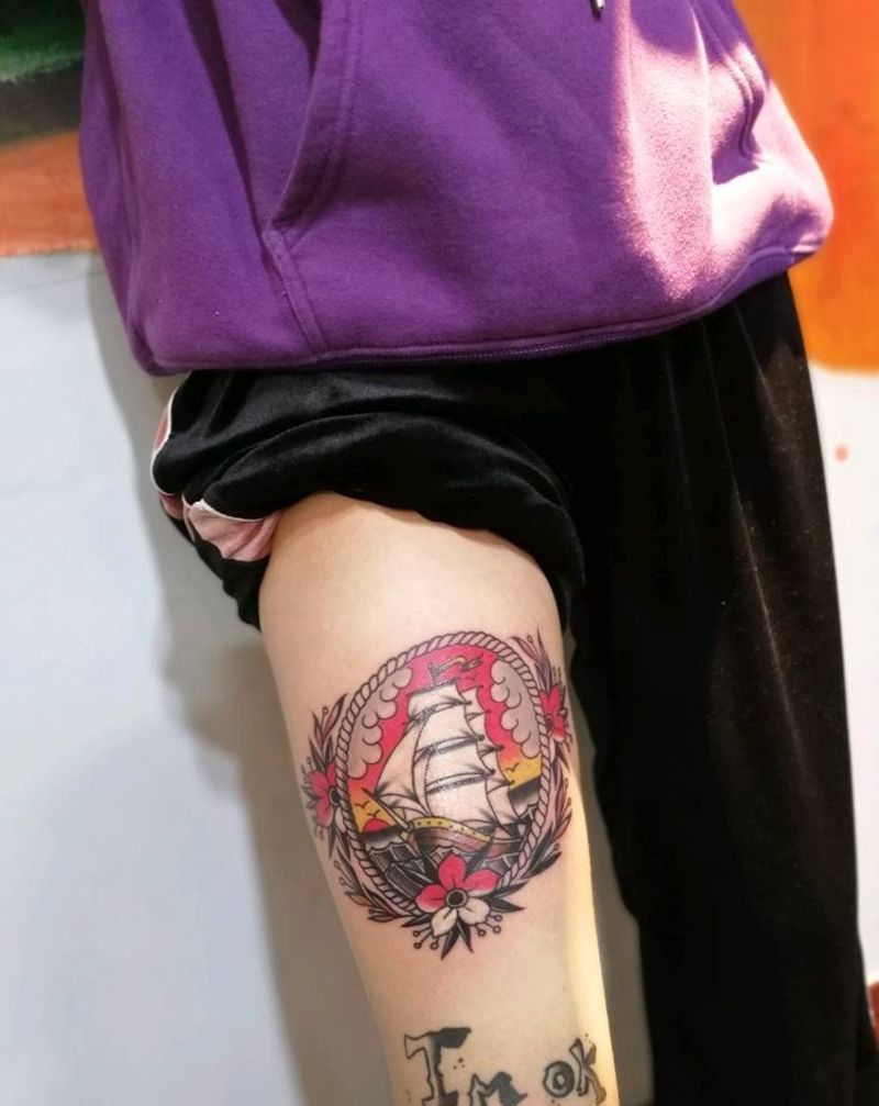 • T网红王老大花腿龙纹身图片_腿部新传统纹身图案