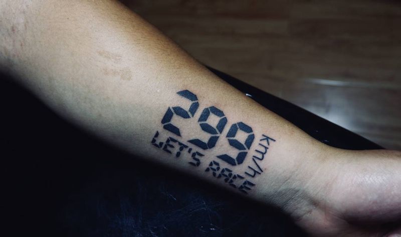 时速纹身图片_手臂图腾数字时速表299纹身图案
