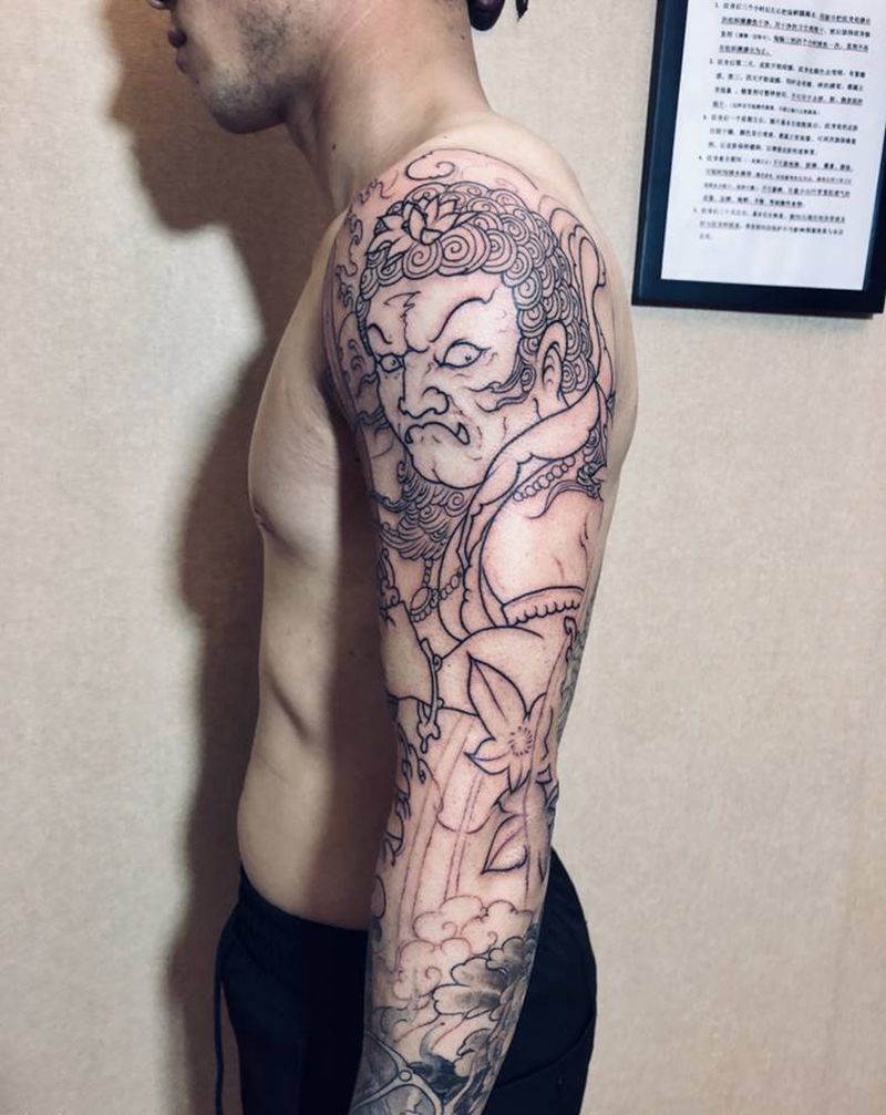 不动明王纹身图片_手臂新传统不动明王纹身图案