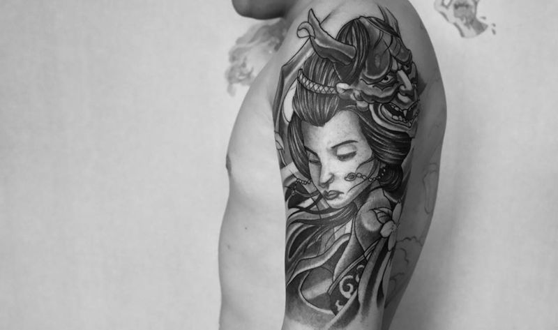 艺妓纹身图片_手臂新传统艺妓纹身图案