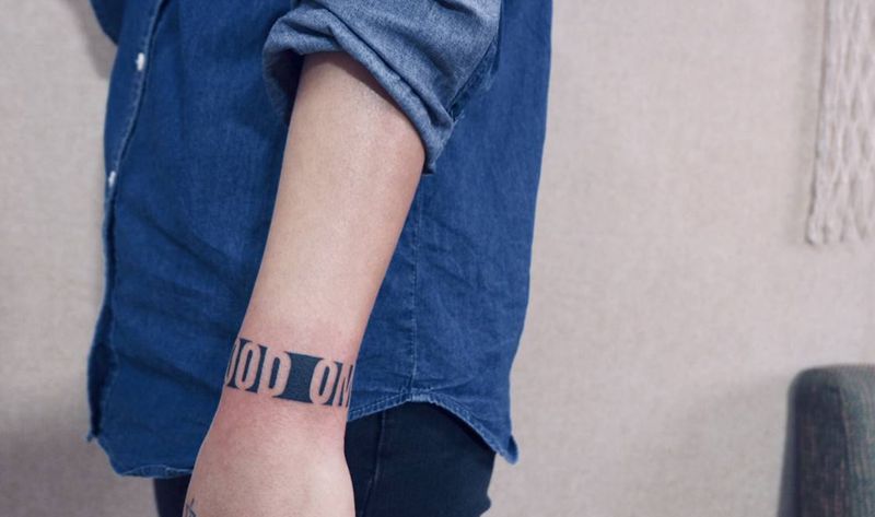 手环遮盖纹身图片_手臂花体字手环英文纹身图案