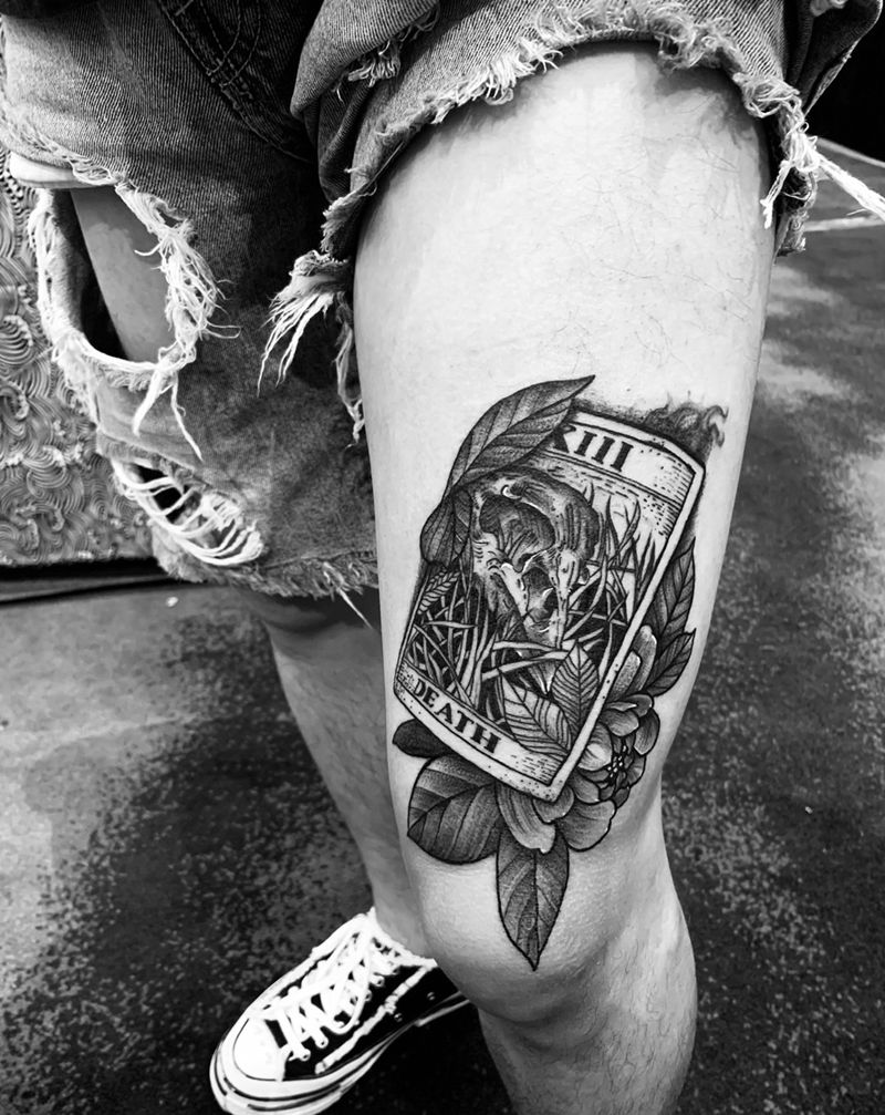 现场组第三名作品塔罗牌纹身图片_腿部点刺纹身图案