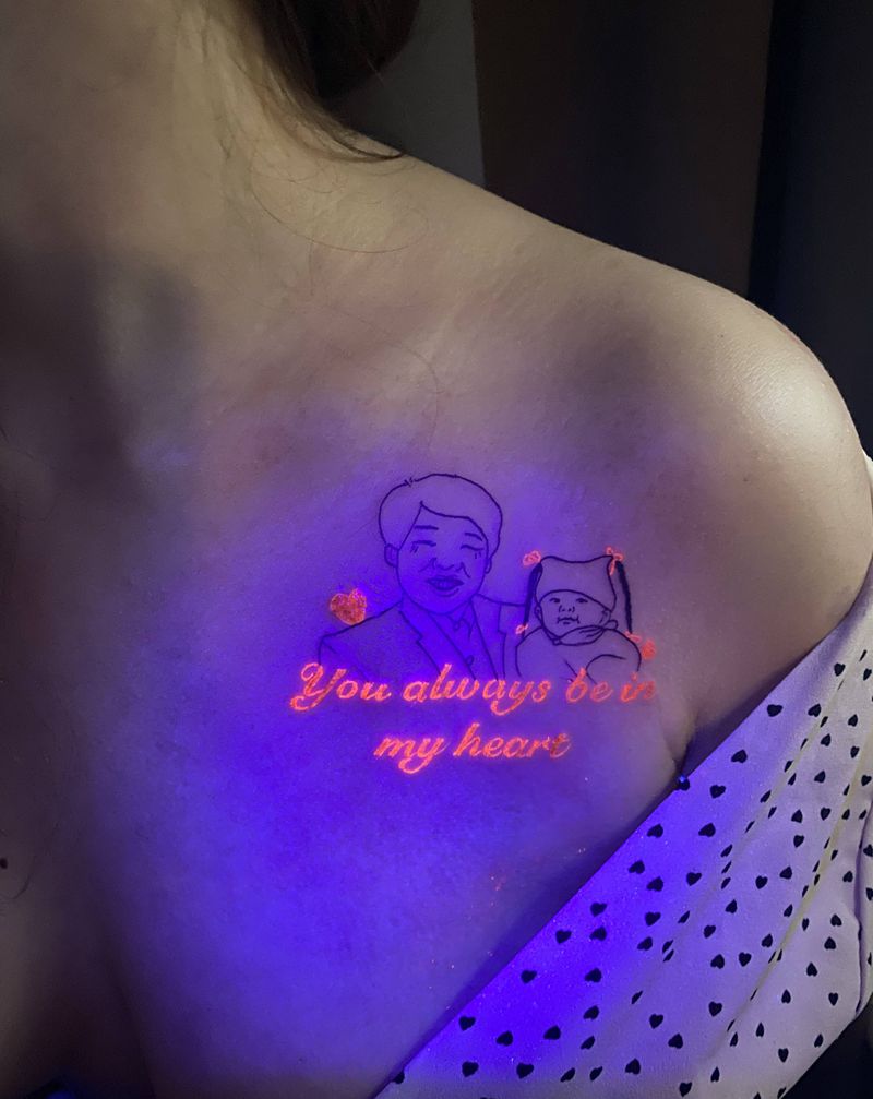 当前位置: 首页 >山东省临沂市纹身店-歌川國芳刺青处纹身图案>荧光 线条照片纹身图片_颈部胸部Old School花体字纹身图案