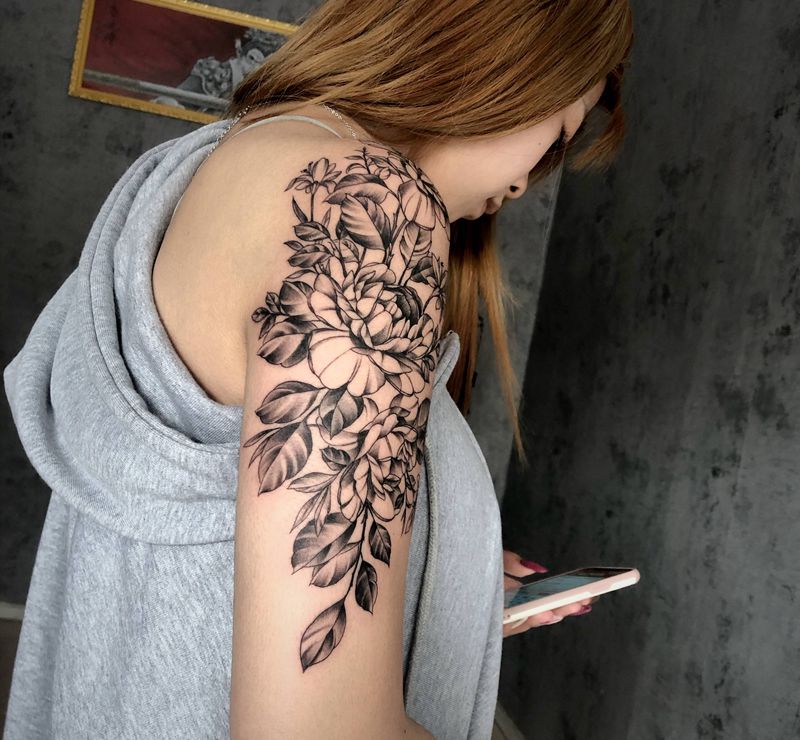 • 女性大花胸纹身_43张霸气漂亮的女性大花胸纹身图案作品