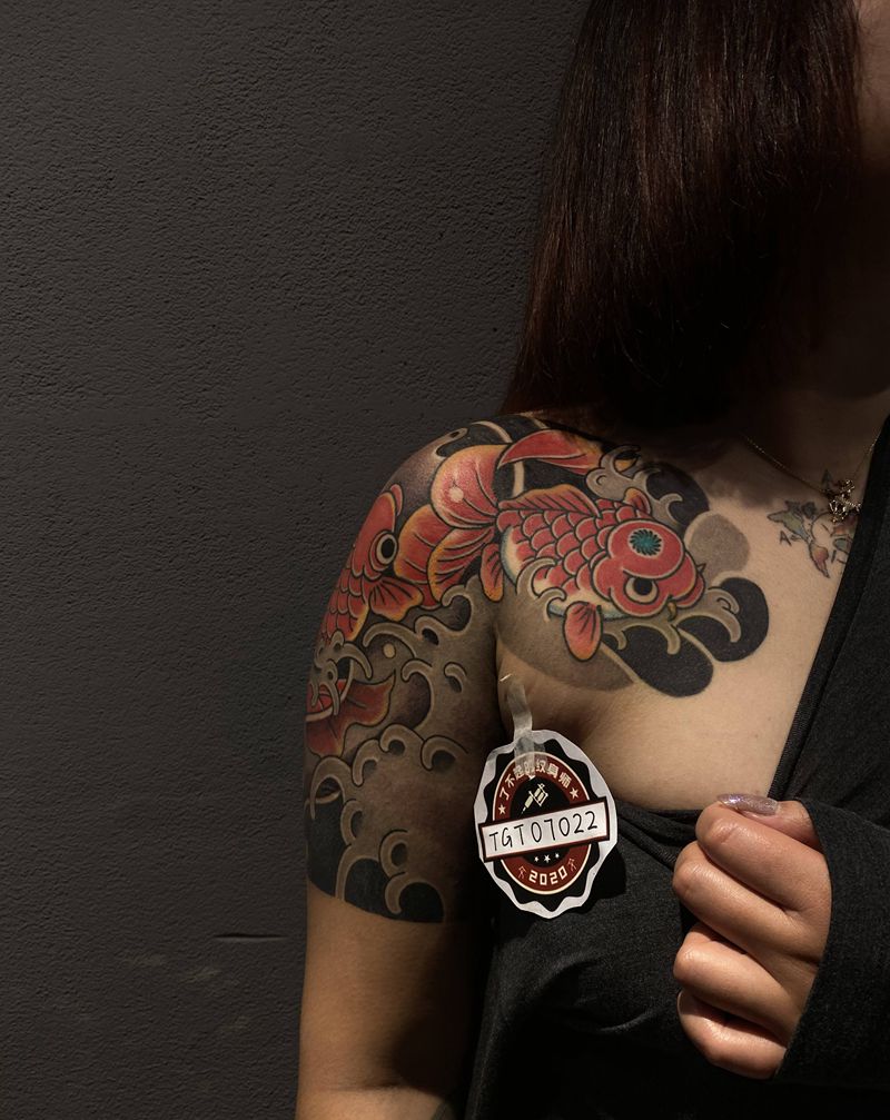 半甲 小金鱼纹身图片_肩部臀部老传统纹身图案