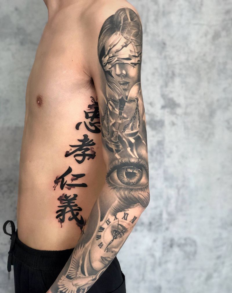 当前位置: 首页 >山东省日照市纹身店-墨龙堂纹身图案>花臂纹身图片_手臂欧美写实纹身图案