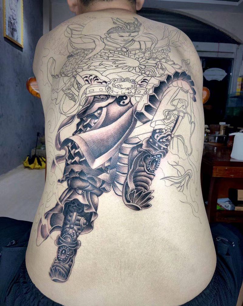 二郎神纹身图片_背部新传统纹身图案