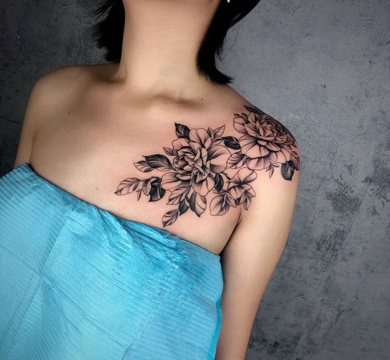 • 女性大花胸纹身_43张霸气漂亮的女性大花胸纹身图案作品
