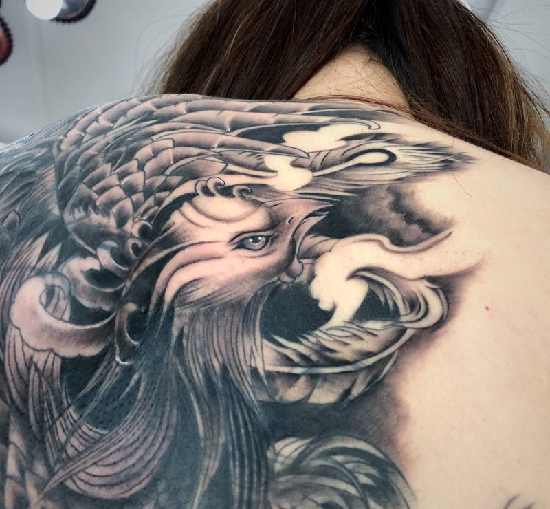 当前位置: 首页 >山东省日照市纹身店-墨龙堂纹身图案>凤凰 遮盖纹身图片_背部新传统纹身图案
