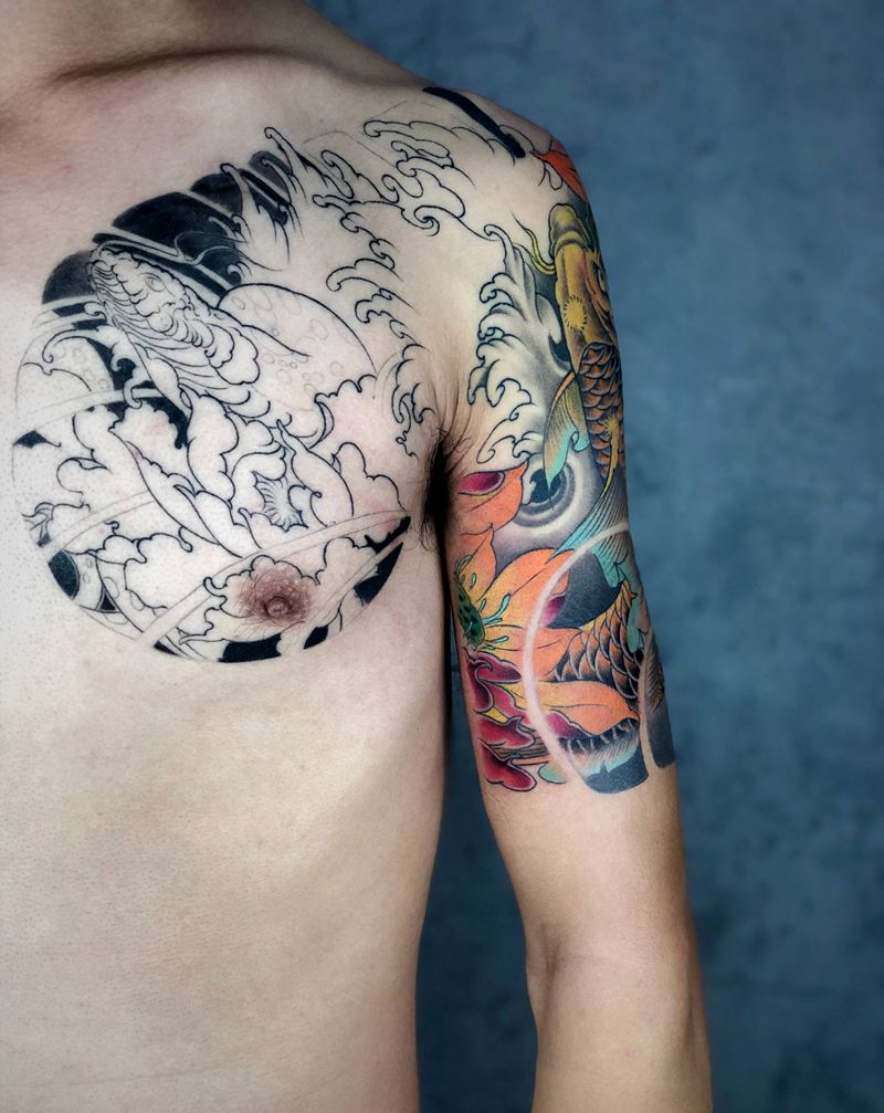 当前位置: 首页 >山东省日照市纹身店-墨龙堂纹身图案>半甲纹身图片_肩部胸部新传统纹身图案