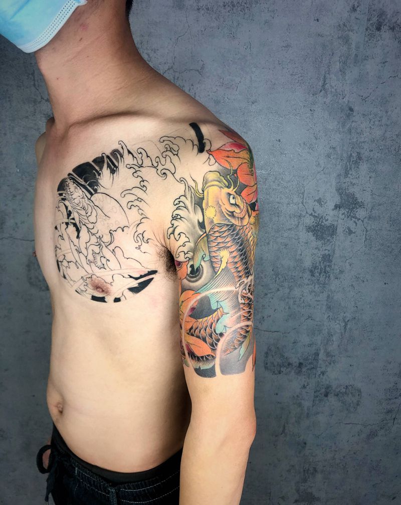 当前位置: 首页 >山东省日照市纹身店-墨龙堂纹身图案>半甲纹身图片_肩部胸部新传统纹身图案