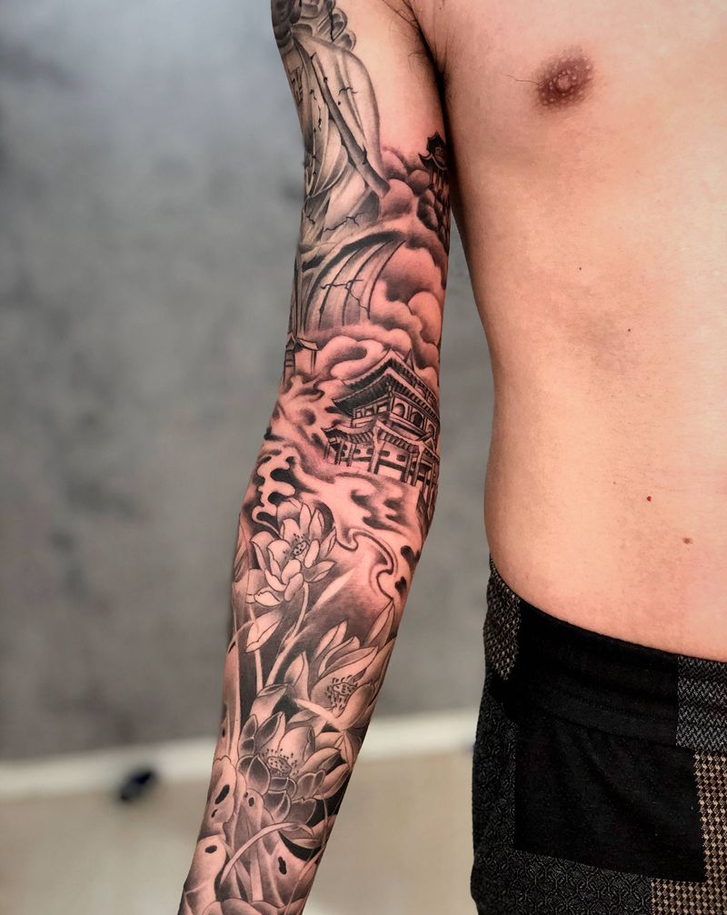 当前位置: 首页 >山东省日照市纹身店-墨龙堂纹身图案>石雕佛像纹身图片_手臂新传统纹身图案