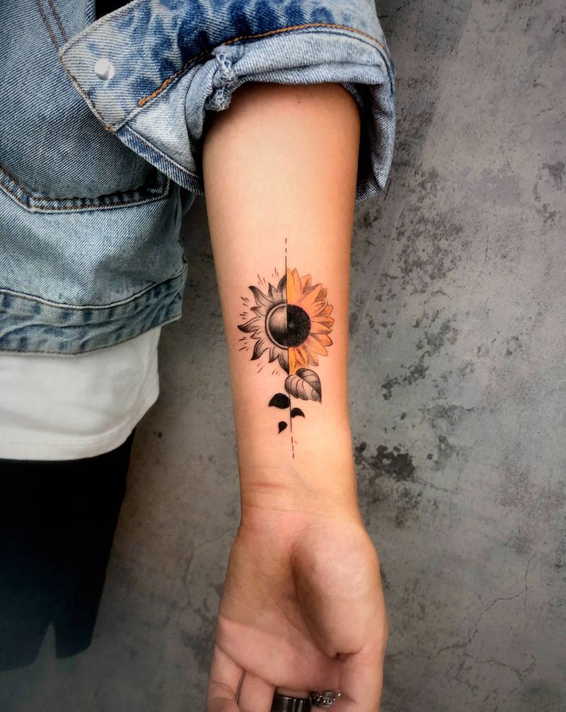 当前位置: 首页 >山东省日照市纹身店-墨龙堂纹身图案>向日葵纹身图片_手臂水彩纹身图案