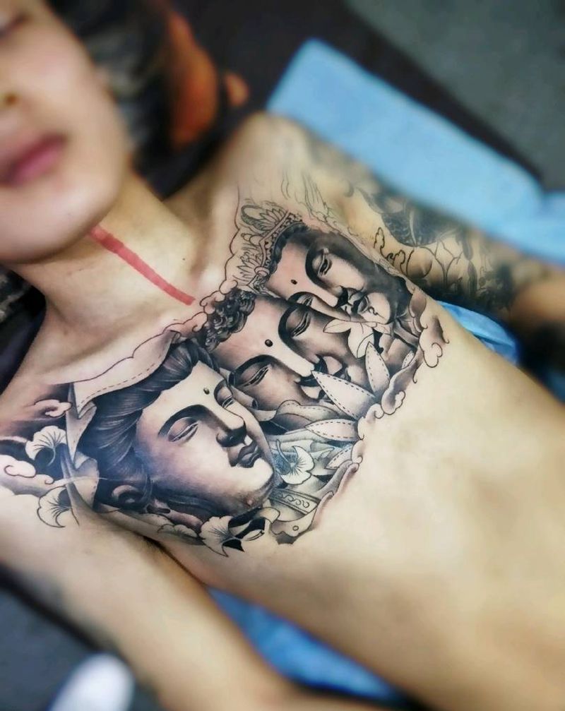 • 女性大花胸纹身_43张霸气漂亮的女性大花胸纹身图案作品