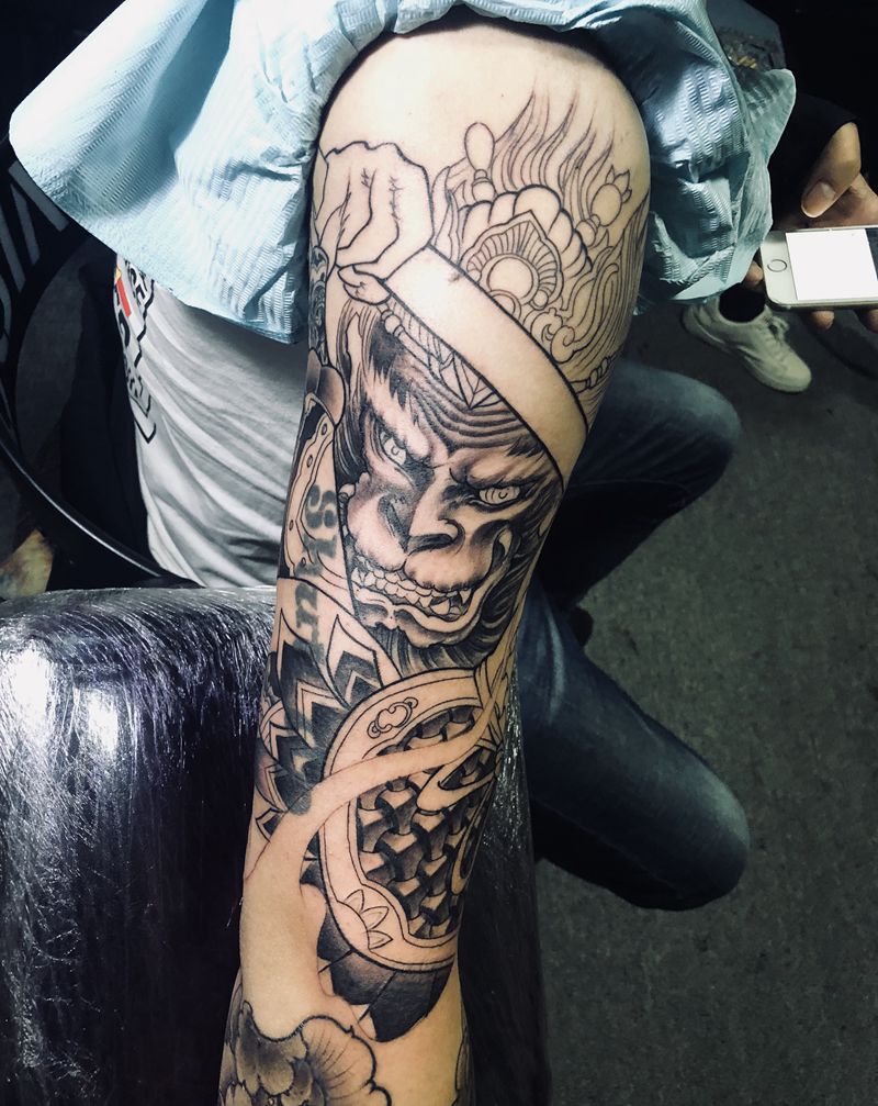 当前位置: 首页 >山东省日照市纹身店-墨龙堂纹身图案>遮盖纹身图片_手臂新传统纹身图案