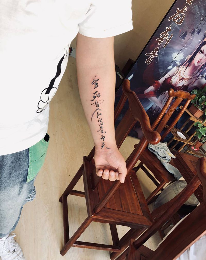 当前位置: 首页 >山东省日照市纹身店-墨龙堂纹身图案>两个小时的工程纹身图片_手臂新传统书法纹身图案