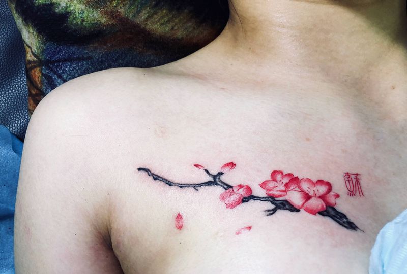 • 女性大花胸纹身_43张霸气漂亮的女性大花胸纹身图案作品