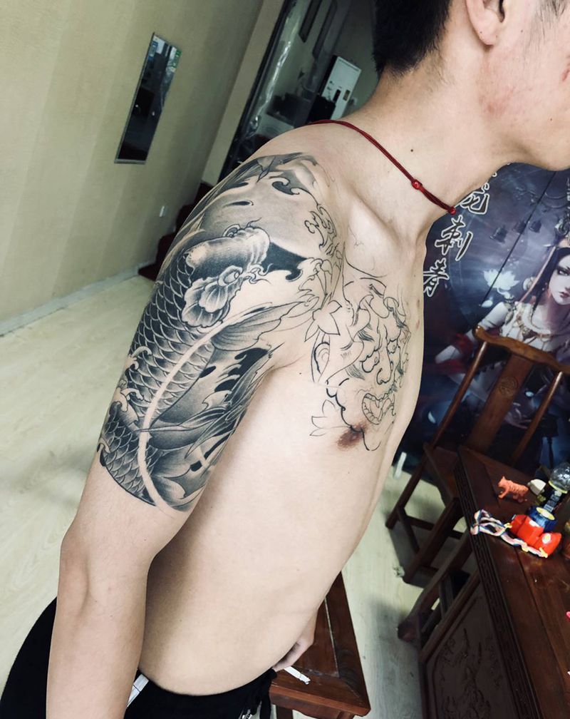 当前位置: 首页 >山东省日照市纹身店-墨龙堂纹身图案>半甲纹身图片_手臂新传统鱼纹身图案