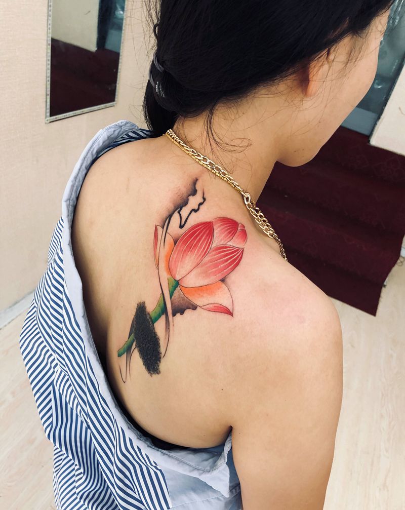 当前位置: 首页 >山东省日照市纹身店-墨龙堂纹身图案>莲纹身图片_背部水彩纹身图案