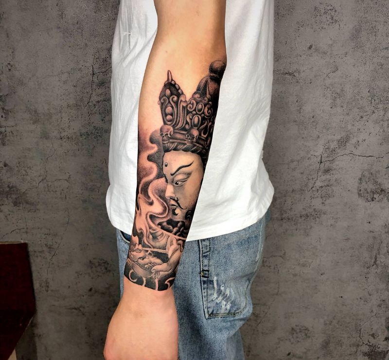 当前位置: 首页 >山东省日照市纹身店-墨龙堂纹身图案>黄财神纹身图片_手臂新传统纹身图案