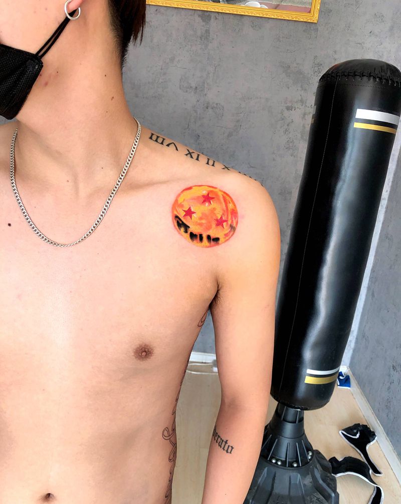 龙珠一枚纹身图片_肩部水彩纹身图案