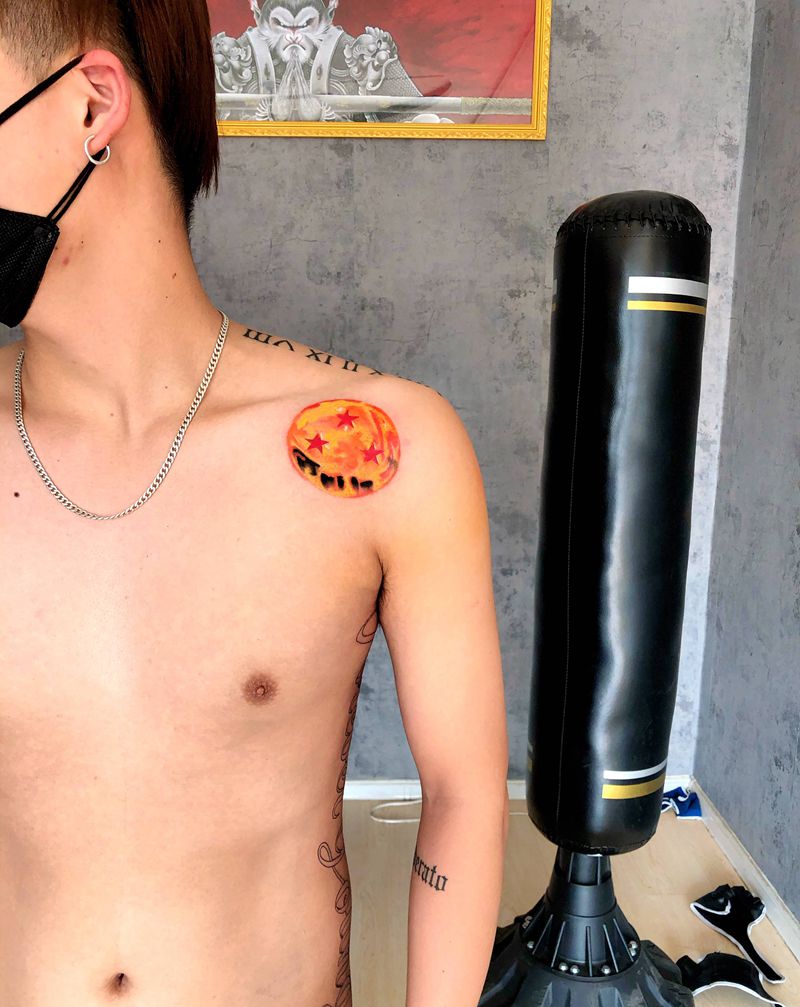 龙珠一枚纹身图片_肩部水彩纹身图案