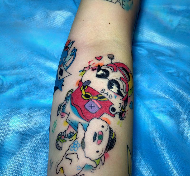 当前位置: 首页 >山东省日照市纹身店-墨龙堂纹身图案>卡通花臂纹身图片_手臂水墨纹身图案