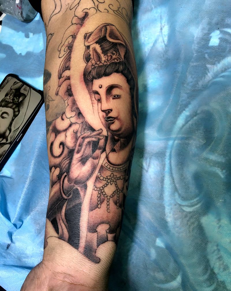 当前位置: 首页 >山东省日照市纹身店-墨龙堂纹身图案>菩萨纹身图片_手臂新传统纹身图案