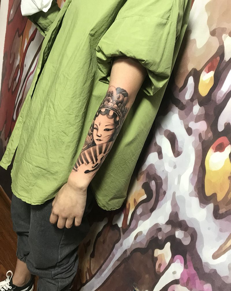 当前位置: 首页 >山东省临沂市纹身店-戊戌刺青纹身图案>花旦小臂纹身图片_手臂新传统纹身图案