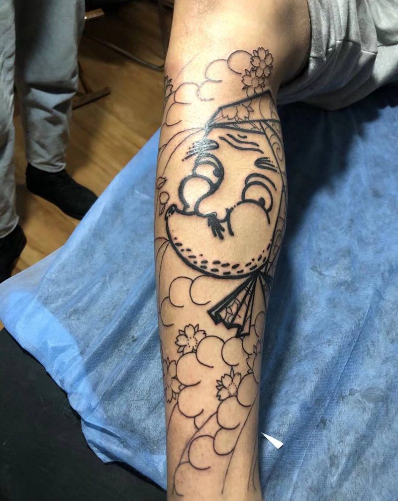 • T包小腿吹火男+阿多福纹身图片_腿部老传统新传统吹火男阿